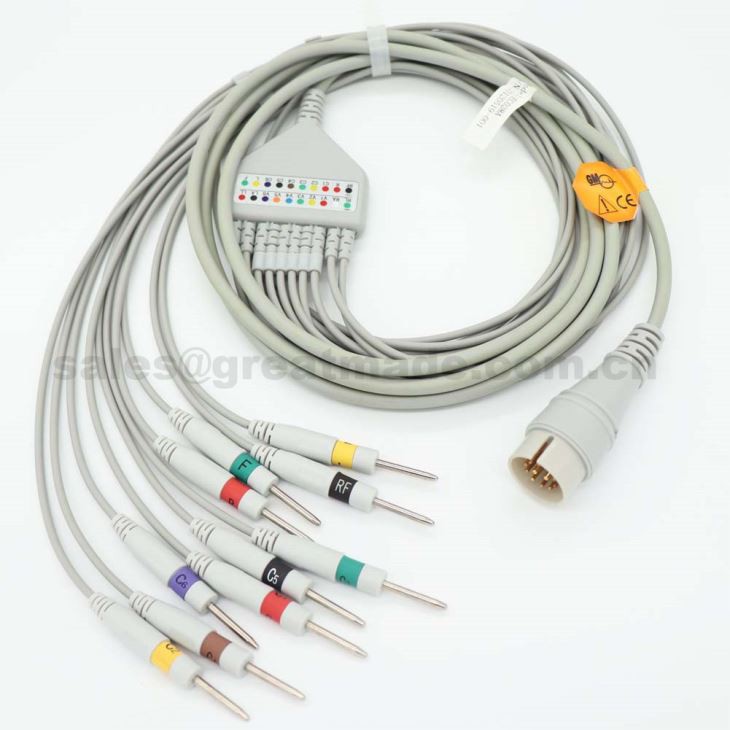 1.Descriere: Fukuda ME FX-031 Cablu EKG, IEC, rotund 11pin> DIN 3.0mm, fără rezistor