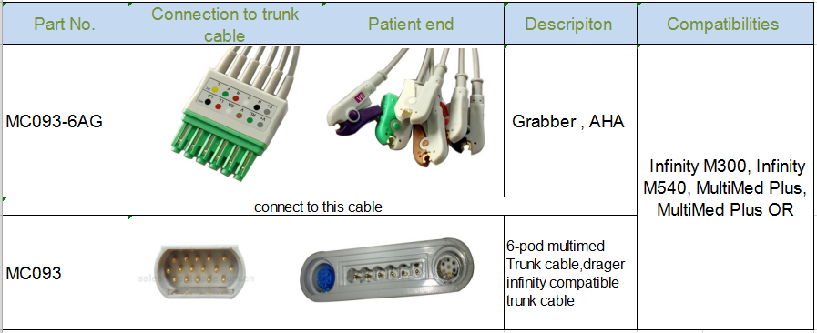 Compatibil cu Draader Infinity M300 ECG Leadwire - MS16547 6-POD ECG leadwire set