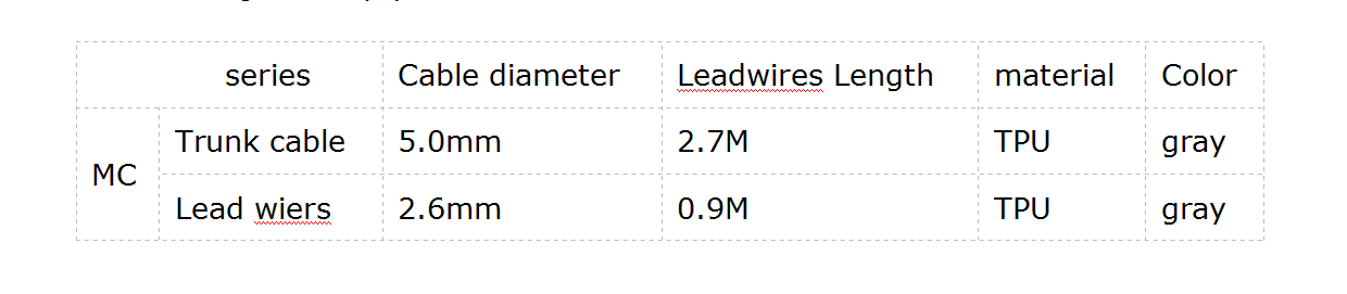 Aplicați pentru monitor multi-parametri / mașină electrocardiogramă / exercită banda de alergare sau defibrilator, tranzitați semnalul de bioelectricitate al corpului uman. Cablurile pacientului și liniile de plumb ale electrodului sunt utilizate pentru a conecta electrozii, cateterele și / sau senzorii plasați pe site-urile corespunzătoare ale pacientului la un dispozitiv de monitorizare pentru monitorizare generală și / sau evaluare diagnostică de către un profesionist din domeniul sănătății