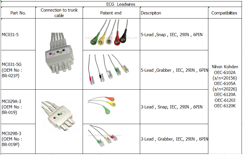 Compatiblw cu Nihon Kohden BR-019P, BR-021P Set de plumb ECG 3/5-lead, snap / Grabber