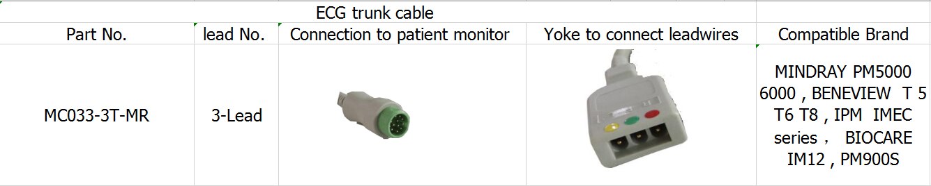 Cablu ECG Cablu cu 3 plumb pentru BENEVIEW T5 T6 T8, BIOCARE IM12, PM900S