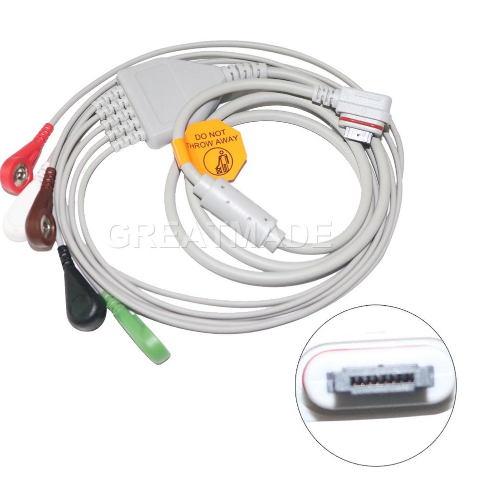 Compatibilcu: OEM nu . 2008594-003 5- plumb Holter ECG Cabl Leadwires pentru GE Seer Light, 2 Channel (5-Ld), AHA, Snap