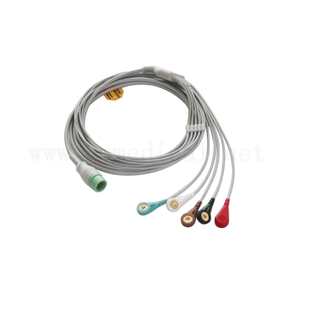 Descrieți compatibilul cu cablul ECG cu 5 plumb Comen C50 C60 C80 cu 5 conducte Runda 12PIN utilizare cu monitorul pacientului