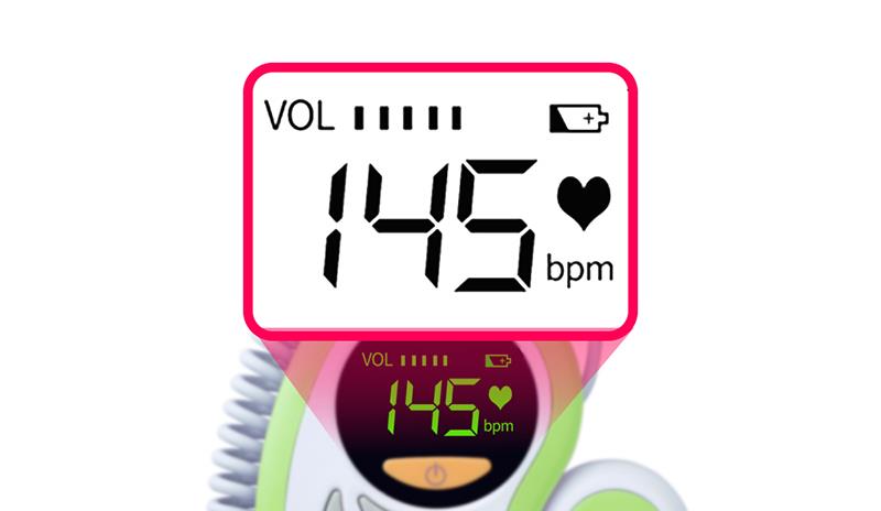 Afisaj cu iluminare retroiluminata cu LED, intelegere mai intuitiva a ritmului cardiac fetal, volum reglabil, ascultarea batailor inimii bebelusului