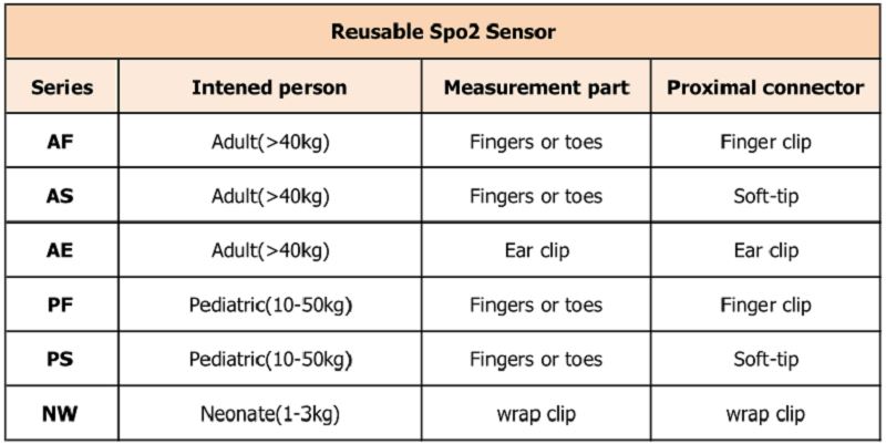 (Seria AF&AS) Senzorul spo2 reutilizabil de mare capacitate este conectat cu pulsometrul compatibil pentru monitorizarea neinvazivă continuă a saturației funcționale a oxigenului a hemoglobinei arteriale (SpO2) și a pulsului (PR) pentru pacienții adulți cu o greutate mai mare de 40 kg.
